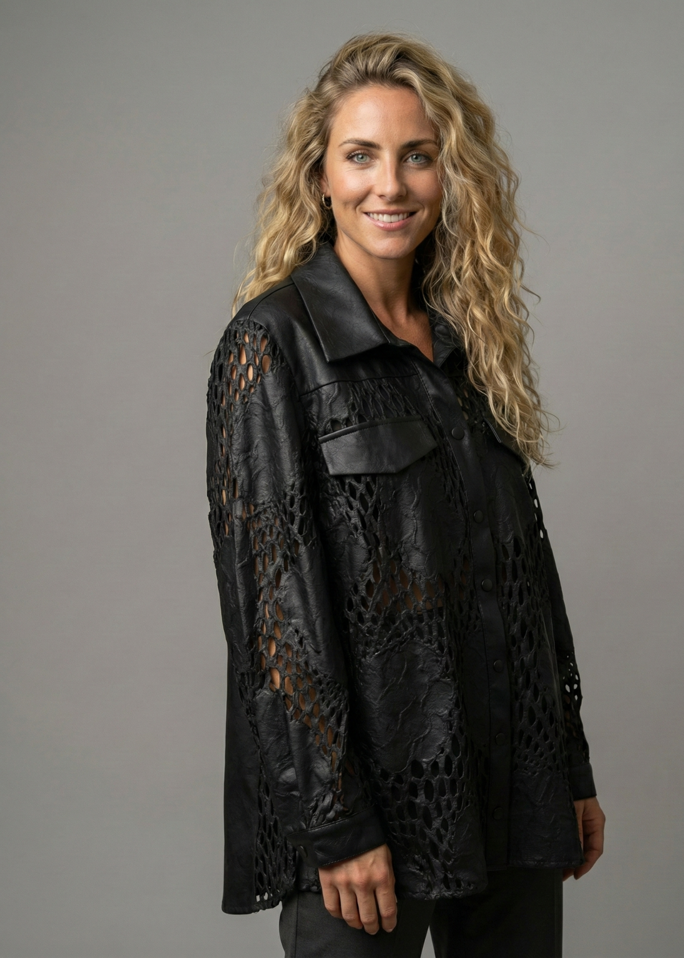 Lazer kesim suni deri gömlek